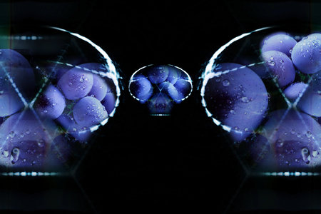 Macro shot of spherical, white, textured shapes clustered together, dark background