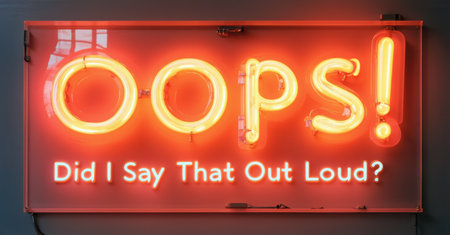 Neon sign reading Oops, Did I Say That Out Loud flashing in orange, set against a dark background, creating a playful, bold ambiance with a humorous and cheeky vibe