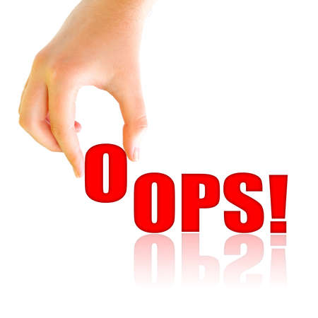 Colorful text spelling Oops! with an exclamation mark on a white background. Clear details and vibrant color...