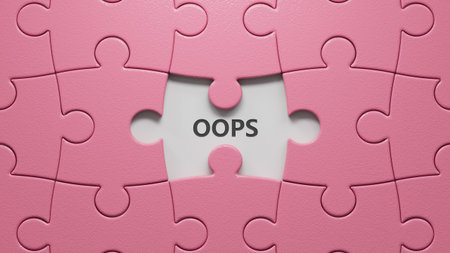 puzzle pieces with missing pieces with OOPS business word.close up of puzzle pieces with missing pieces,Business Concept.3D rendering.
