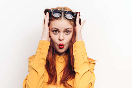 cheerful woman posing glamor cosmetics isolated background