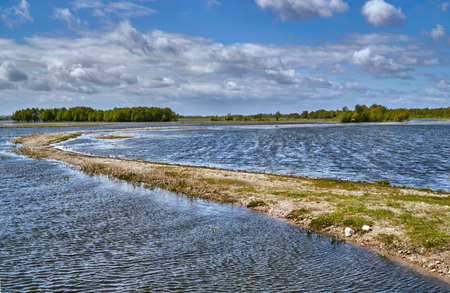 A river that overflowed its banks.Spring flood.Spring landscape.The river overflowed its banks,trees stand in water.