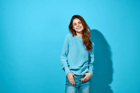 young woman in winter sweater fashion cosmetics clothes isolated background