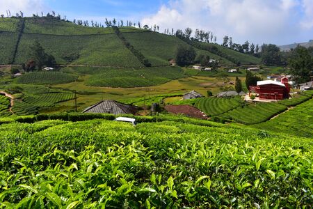 Beautiful tea garden or tea estates from Ooty. Lush greenery Landscape photograph of Nilgiri hills.