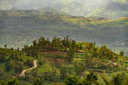 scenery of tea garden with farmhouse at sri lanka at dawn