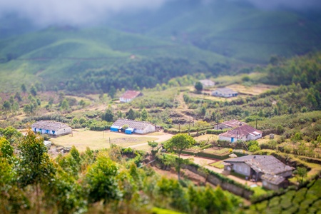 village houses small sity and green tea plantation in india