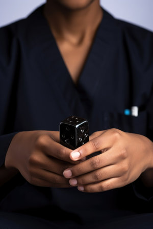cropped shot of a young male doctor holding a black dice