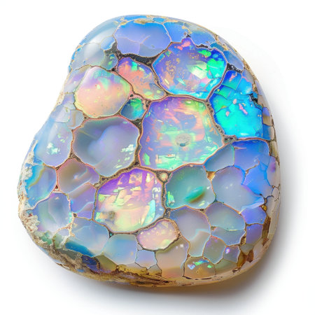 This stunning opal gemstone displays vibrant iridescent colors and unique patterns on a smooth surface. Perfect for showcasing natural beauty and elegance.