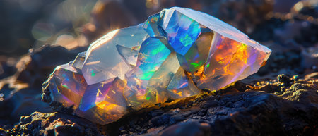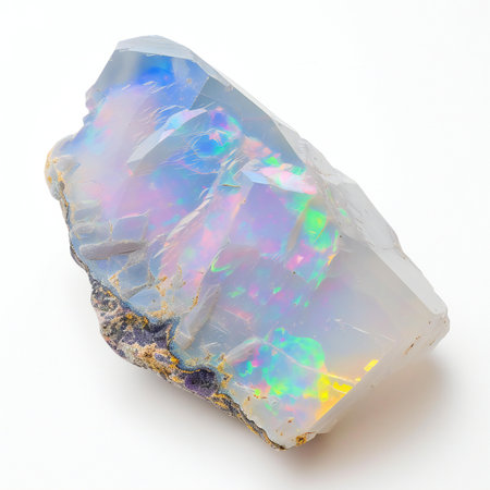 Stunning opal crystal with iridescent colors, catching the light beautifully