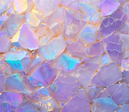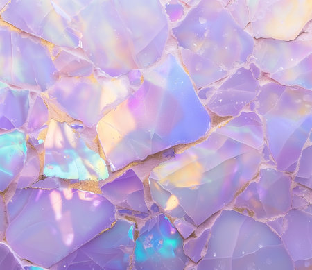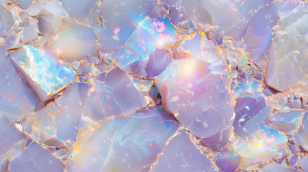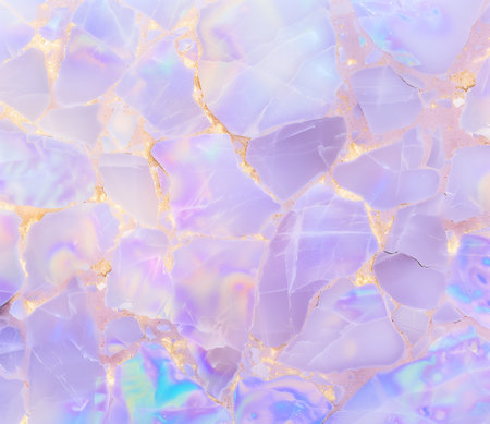 The artwork features a stunning marble texture characterized by its iridescent lavender and white hues. Golden veins run through the stone, adding a touch of luxury and elegance. This captivating surface serves as a beautiful background for various design applications.