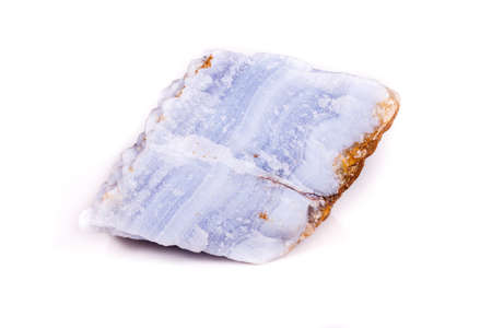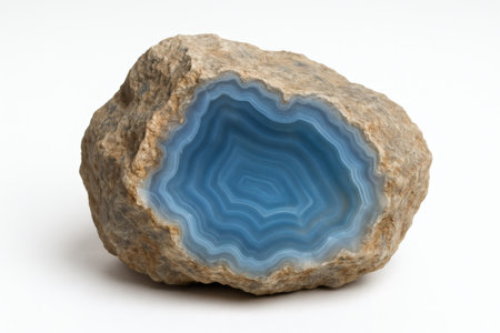 Chalcedony Gemstone Slice on White Background. Crystal, jewelry, gemstone, blue gem, luxury gem, photorealistic