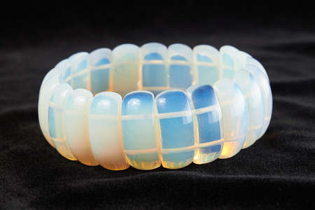 moonstone bracelet semi-precious stone on black velor. close up