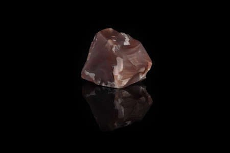 Natural mineral rock specimen - raw chalcedony from Djambul, Kazakhstan on black glass background.