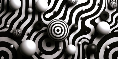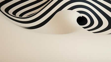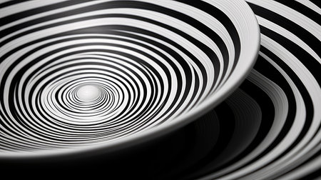 Design art background featuring a bold, black and white optical illusion pattern, creating a sense of depth and movement