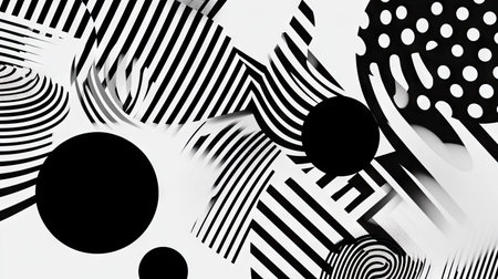 Abstract background featuring black and white stripe lines and geometric circle patterns, perfect for dynamic visuals.