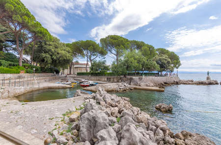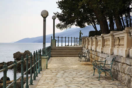 Stone path along the shore in Opatija, Croatia, Europe. No people. Holiday travel destinations around Europe.