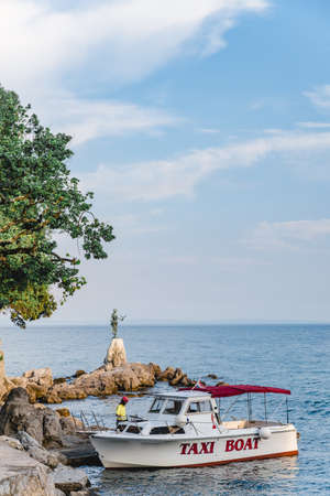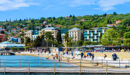 Opatija, Croatia, July 30, 2020: People are enjoying a sunny day at a beach in Croatian town Opatija