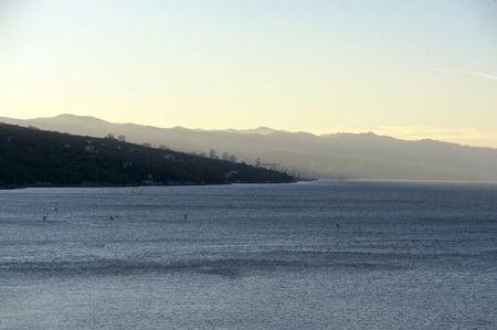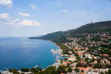 Town of Rijeka on Croatian Adriatic sea coastline seen from the Kvarner gulf shoreline and town of Lovran