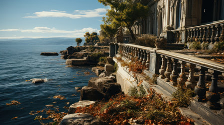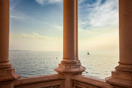 Romantic Balcony of Castle Miramare on the coast of Adriatic Sea, Italy
