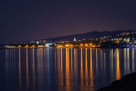 Novi Vinodolski town in Adriatic sea in Croatia at night. Travel, tourism, summer and vacation concepts
