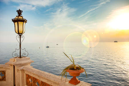 Beautiful Sunset on the Balcony of Castle Miramare, Adriatic Sea, Italy