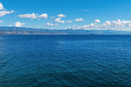 Panoramic view of the blue sea on the beach Kostrena, northern Adriatic, Croatia.