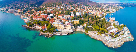 Town of Opatija and Lungomare sea walkway aerial panoramic view, Kvarner bay of Croatia