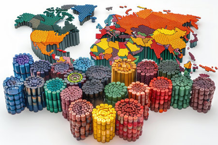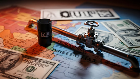 A detailed depiction of a board game featuring oil rigs and coins set on a colorful map. This scene captures strategic gameplay elements, suitable for educational content or entertainment.