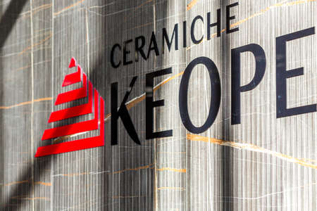 BOLOGNA (ITALY), SEPTEMBER 26, 2018: light is enlightening KEOPE logo at CERSAIE, international exhibition of ceramic tile and bathroom furnishings