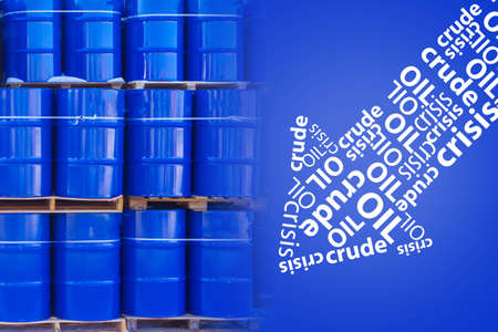 The oil crisis. Blue barrels and a down arrow. Lower crude oil production. The collapse of the oil market. Lower fuel prices.