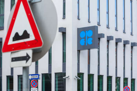 VIENNA - JULY 22: Fragments of facade and logo OPEC on the Building Organization of the Petroleum Exporting Countries on July 22, 2012 on Helferstorferstrasse 17 in Vienna, Austria.