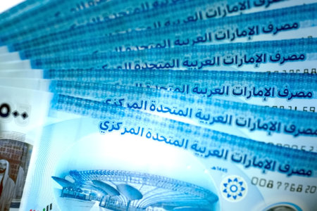 Close up Dirhams currency, AED, Bank note and coins, United Arab Emirates