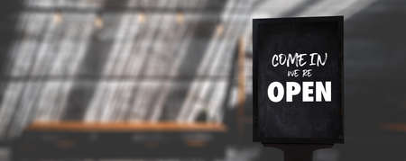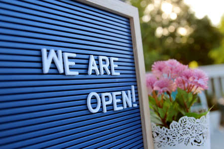 Welcome sign at the store / bar / restaurant. We are open. After COVID-19 quarantine