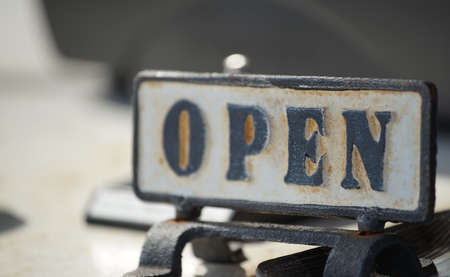 Letter of the open of the rusted old signboard