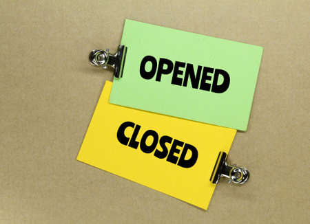 colored paper with the words opened and closed