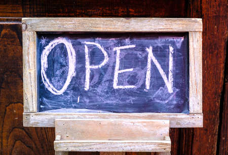 open sign on a chalkboard
