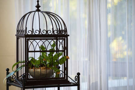 Beautiful decorative cage in spring garden