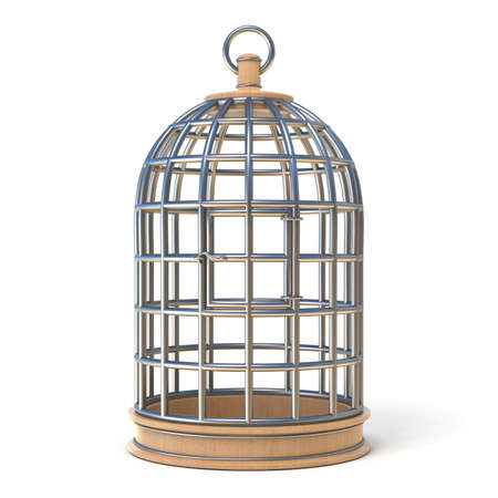 Empty bird cage closed 3D render illustration isolated on white background