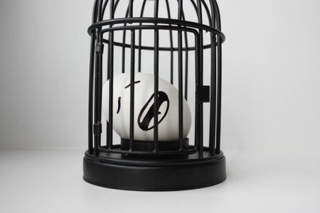 Loan-trap. Mortgage - a cage. The concept of financial slavery. An egg is crying. An egg with a painted face. Photo for your design.
