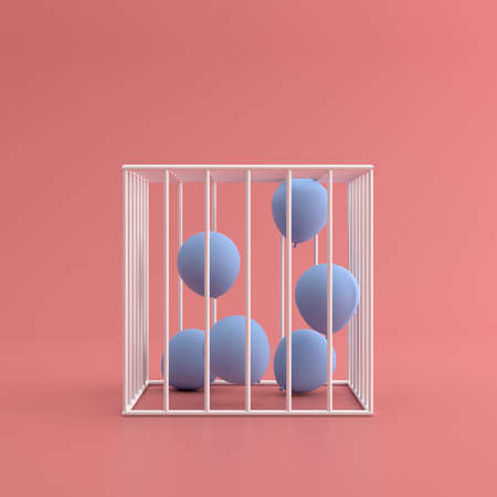 Mock up of a cage with blue balloons. 3d render.