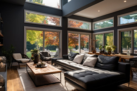 modern living room with large windows and stylish