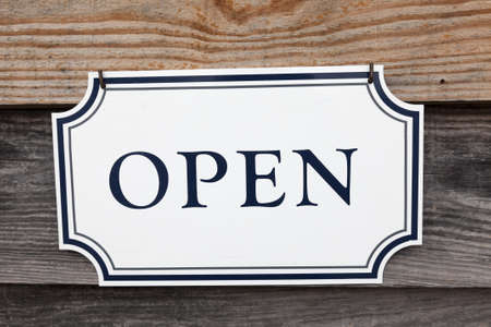 A business sign that says open on cafe or restaurant hang on door at entrance. Vintage color tone style.