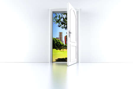 Door open and see beautiful blue clear sky metaphor wonderful hope thing is coming.