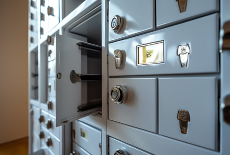modern metallic mail box mail room in share common area space of condominium apartment flat unit mansion
