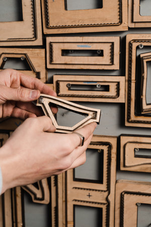 Forms for leather punching press for punch genuine leather. Craftsman tools. Process of creating genuine leather products in factory