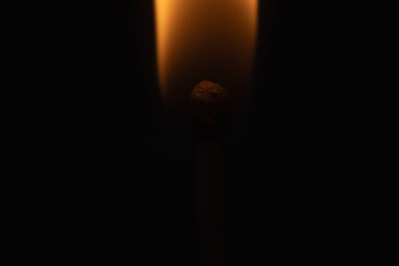 Striking Close-Up of Lit Matchstick in Darkness for Dramatic Effect