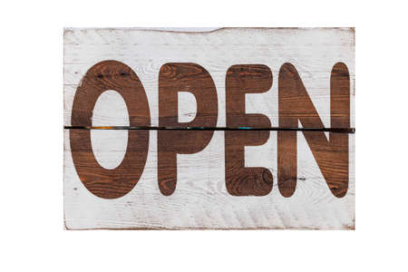 White wooden open sign broad front of cafe. Business service and food concept. Vintage tone filter effect color style.