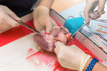 medical practice for students. open heart surgery. Stitching of vessels and stopping of bleeding