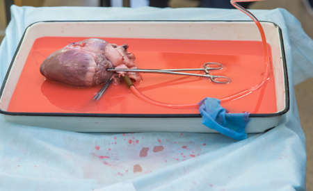 Surgical instruments and heart model. Heart surgery concept