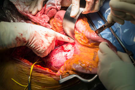 a surgical team performs a surgical abdominal operation